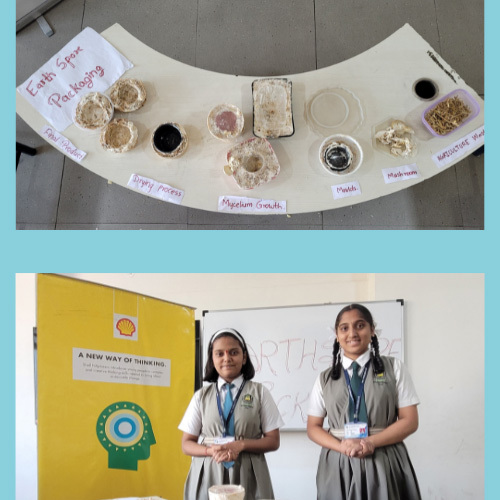 With help from their mentors, the team wanted to develop a safe, sustainable packaging alternative using nature-based materials. Their idea, Earth Spore Pack, is a fully compostable material made from mushroom roots (mycelium) and agricultural waste – materials that are natural, renewable and biodegradable. The goal was to replace plastic packaging with something that works with the environment, not against it.